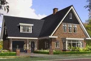Dit frisse ontwerp met een warme uitstraling hebben we ontwikkeld als modelwoning. Aan de rand van Wierden kunt u dit huis dan ook van binnen en van buiten bewonderen. Het enorme overstek zorgt voor een beschutte toegang tot de ruime hal met vide. Deze riante entree is een belofte die in de afmetingen van alle andere vertrekken ruimschoots wordt waargemaakt. Twee erkers maken het mogelijk in de woonkamer ook twee royale zithoeken te creëren. Dan is er de riante open woonkeuken met directe toegang tot de veranda, waar zomers buiten kan worden gewoond. Vanuit de hal is ook de garage binnendoor bereikbaar.